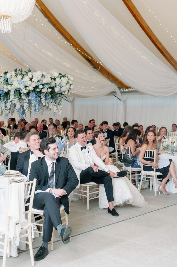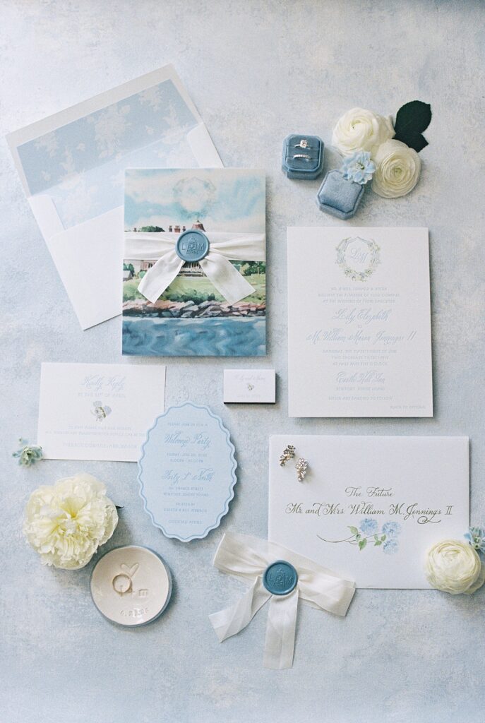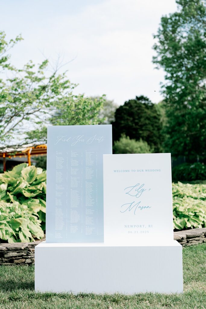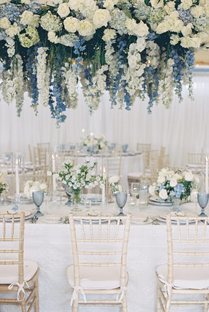 The design leaned into the venue’s natural beauty: soft florals, blue and white coastal tones, and understated elegance. Castle Hill Inn weddings don’t need to compete with the scenery. The setting speaks for itself, allowing the day to unfold in a way that feels organic and refined.