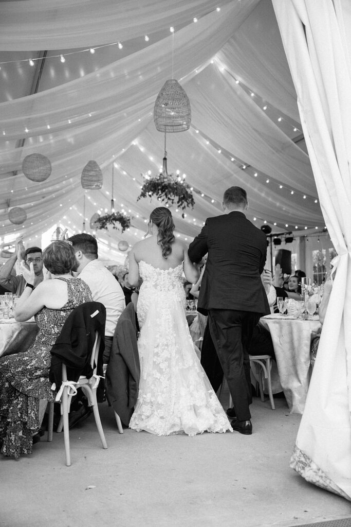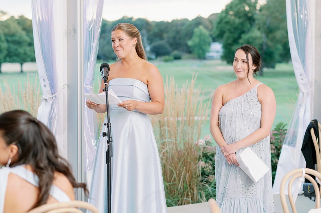 The reception was held beneath a beautifully designed sailcloth tent, set against the lush green of the golf course. Cocktail hour unfolded alfresco, allowing guests to move naturally between indoor and outdoor spaces.
